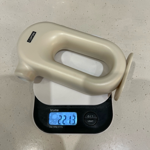 본품의 무게는 221.3g이 나옵니다. 핸드폰 다들 하나씩은 가지고 계시죠? 최근 나온 아이폰 15프로 모델이 티타늄을 사용해서 역대 최대로 가볍게 나왔다고 합니다. 그 무게가 187g입니다. 하루 종일 들고 다니는 핸드폰 정도의 무게니까 얼마나 가벼운지 이해가 되시죠?