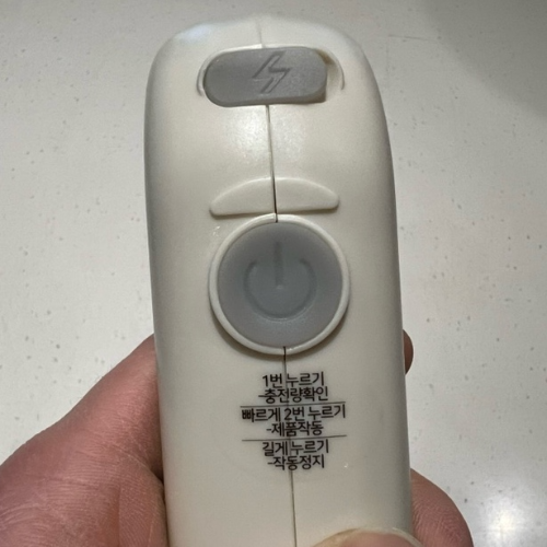 인스타그램이나 유튜브에서 한국사람의 특징을 뭐라고 설명하는지 아시죠? 설명서는 아예 꺼내보지 않는 민족입니다. 그런 부분까지 가만했는지, 손잡이, 작동바튼 아래 사용방법을 딱! 붙여놨습니다. 전원 버튼만으로 작동이 되는데요.