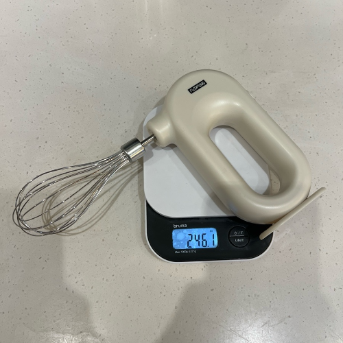 앞에 끼워 사용하는 작은 휘퍼를 끼우면 무게가 250.5g입니다. 큰 휘를 끼우면 246.1g이 나옵니다.