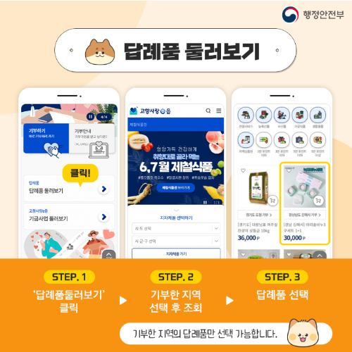 아래이미지를 클릭하시면 답례품을 둘러보실 수 있습니다.