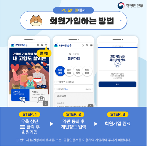 고향사랑기부제는 '고향사랑e음' 사이트에서 기부를 하실 수 있습니다.
