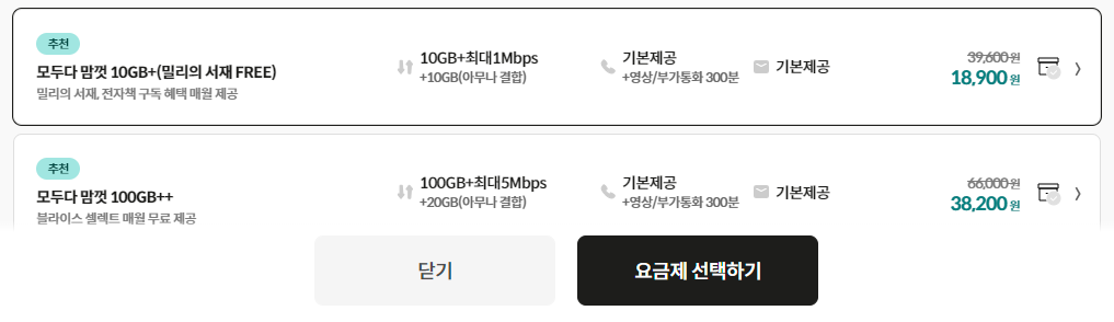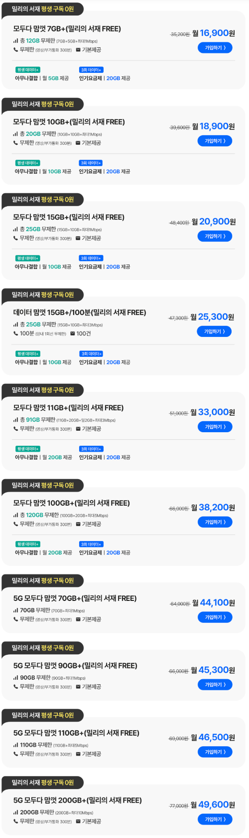 이외에도 더 많은 밀리의 서재 제휴 요금제가 있습니다.