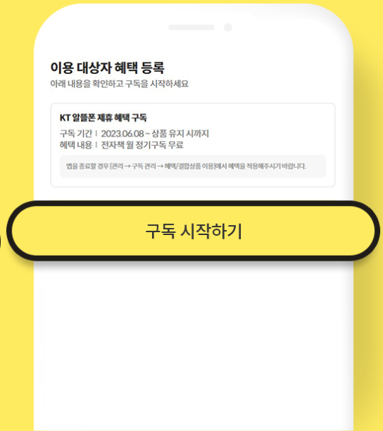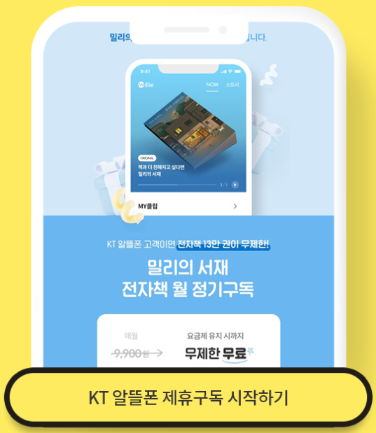 밀리의 서재를 처음 이용하시는 분은 회원가입을 후 KT알뜰폰 제휴구독 시작하기를 진행해 주세요!